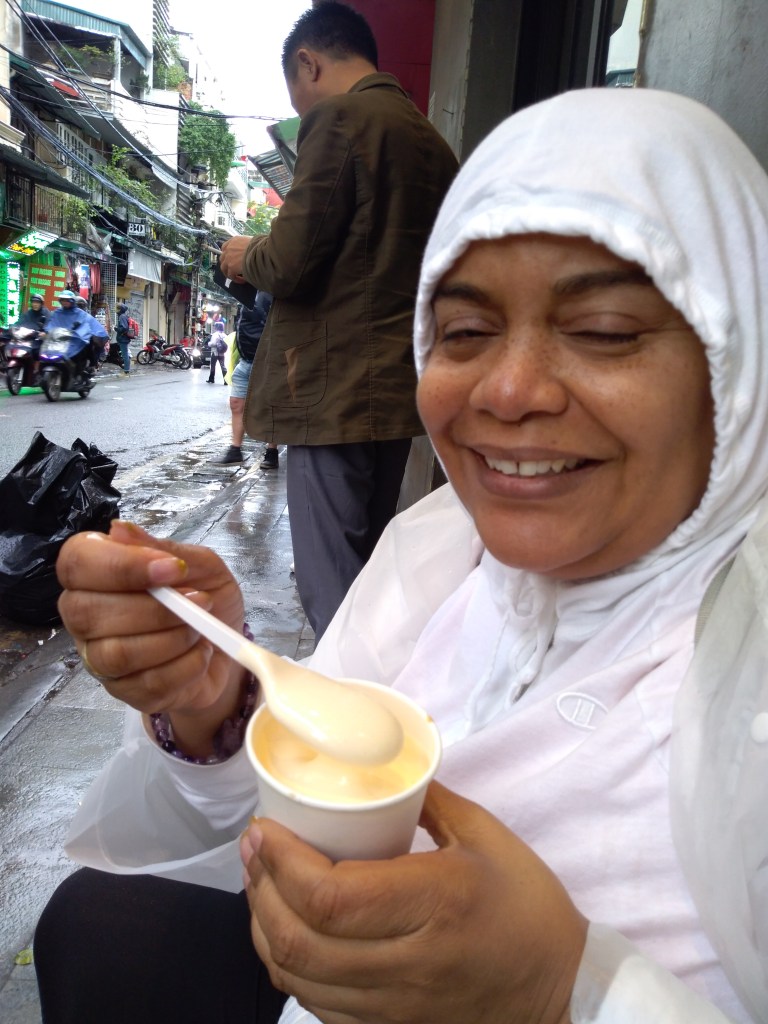 Hanoi was our base city and we enjoyed most of our time there. Marni and I ate plenty of street food from banh mi to fresh fruit and pho (minus the mystery meat) but what I discovered is that the very best thing I put in my mouth was the iced coconut coffee. OMG! First, I love coffee but it/caffeine does not love me. It makes me talk fast and my heart race. I become sweaty, fidgety and nervous so I rarely drink it and when I do I ask for decaf. No one in Vietnam knew what I was talking about when I asked for decaf so I sacrificed and drank only caffeinated coffees. Lol! These icy, creamy and mildly sweet and bitter concoctions are simply the most delicious coffee drink I have ever put in my mouth. It was far better than the egg coffee and egg hot chocolate. My travel mates had to ration them to me because they got tired of me complaining of heart palpitations. If I ever get my hands on one of those fancy espresso machines I promise to try and reverse engineer this addictingly delectable drink.